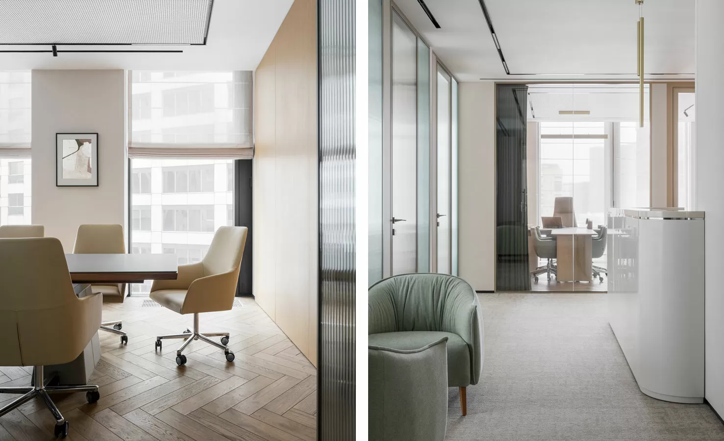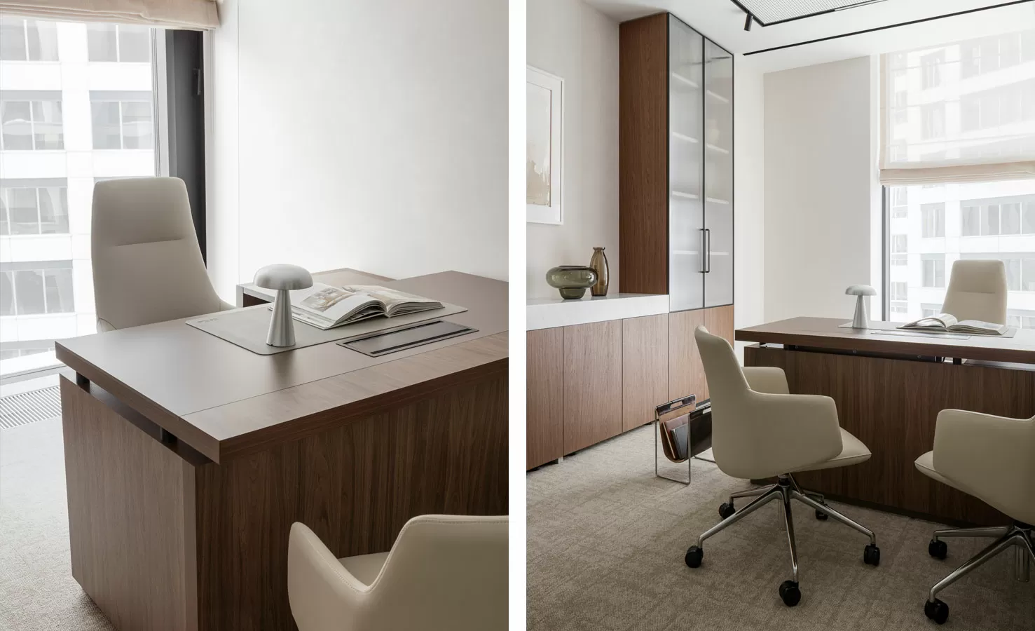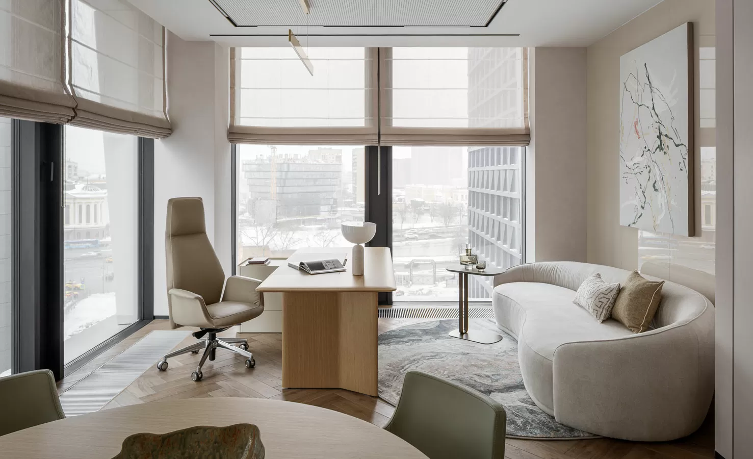 Кресла: DownTown President от Poltrona Frau (Италия), Страйп, Капитан и Тау (Китай), Alya от Andreu World (Испания), Фелиция от Solo (Россия-Италия), ME Mesh от Wilkhahn (Германия)